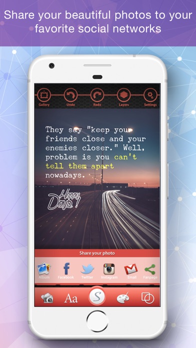 + Compose your sayings/quotes professionally with gorgeous templates and backgrounds designed by the best artists in the world.