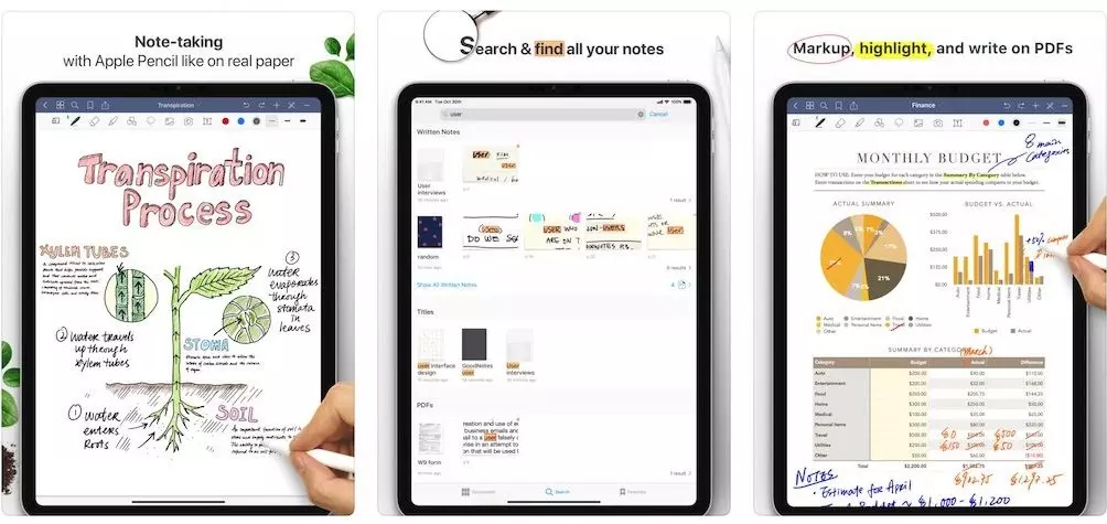 Type with the keyboard, insert images, draw perfect shapes quickly; a mix between papers, insert PDF docs inside a notebook; rearrange or delete pages as you like. Goodnotes free ios are very flexible.